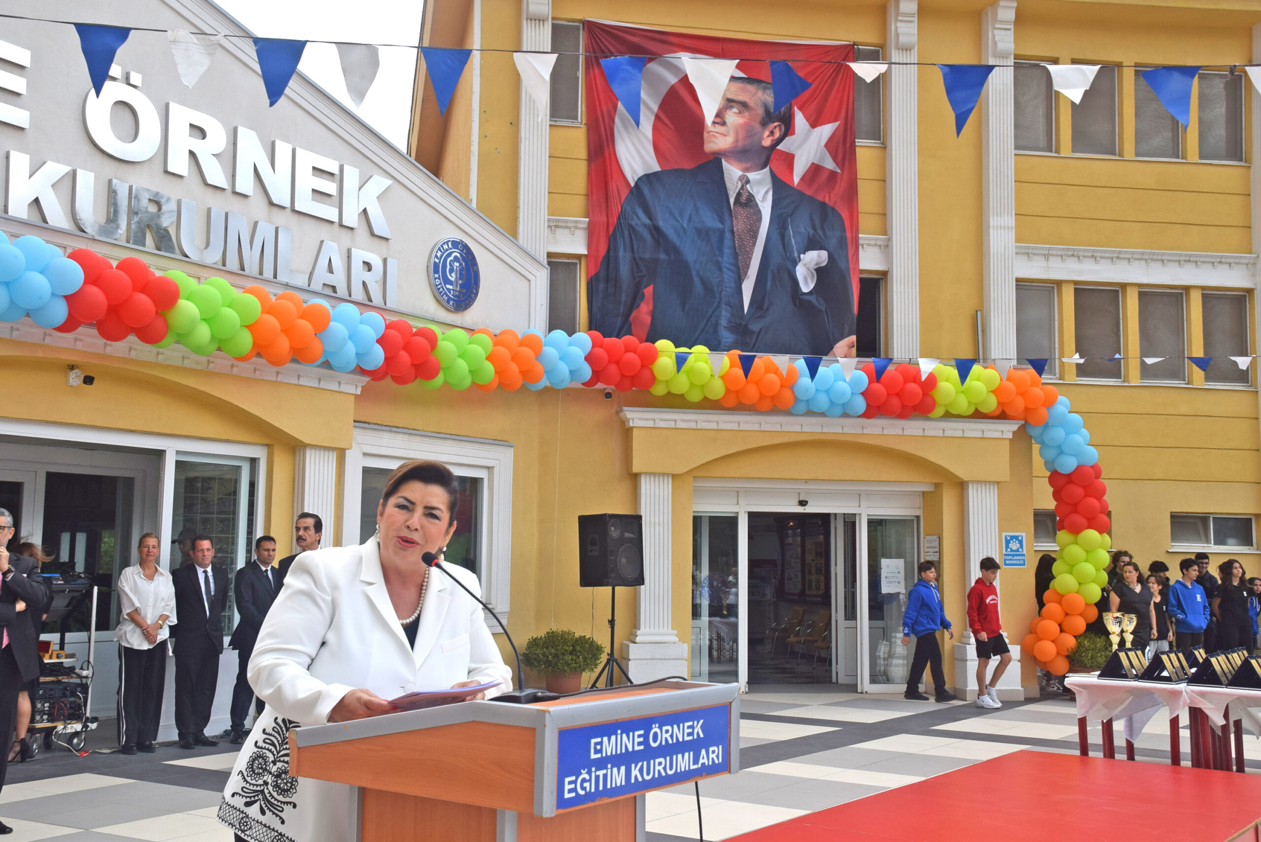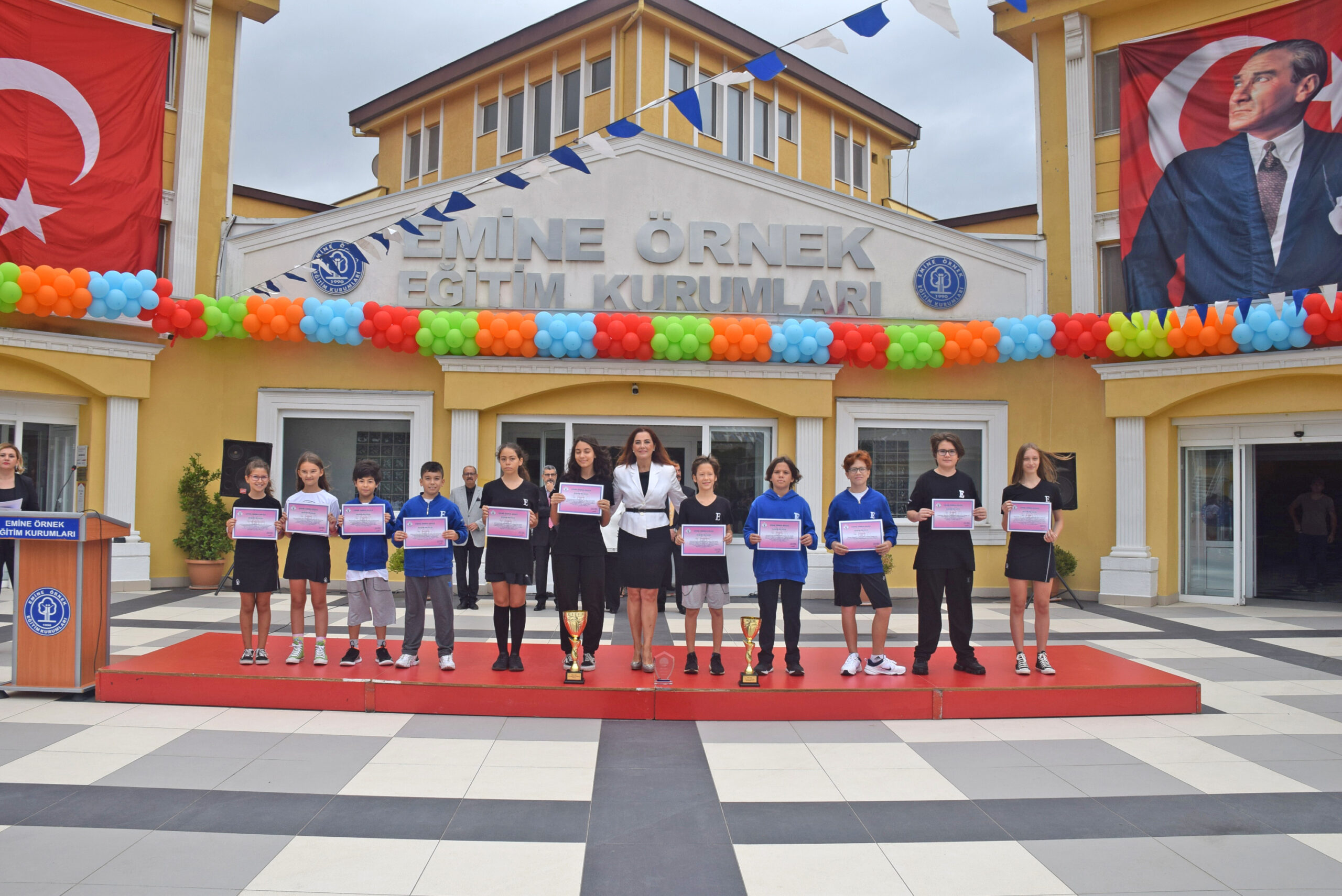 Ulusal ve Uluslararası birçok alanda derece yapan öğrencileri kutlayan Kurucu Müdür Emine ÖRNEK, konuşmasında “Eğitim Kurumlarımızın temel amacı, öğrencilerimize kaliteli bir akademik düzey sağlamak, onları sosyo-kültürel, sanatsal ve sportif yeteneklerine göre yönlendirmek, yabancı dili etkin kullanabilmelerini sağlamak ve toplumsal sorumluluğu olan bireyler olarak yaşama hazırlamaktır. Öğrencilerimizi; yaratıcı, katılımcı, sorumlu, iletişimi güçlü ve çağdaş değerlerle donanmış aktif bireyler olarak topluma kazandırmak, ana misyonumuzun temelini oluşturmaktadır. Çağdaş eğitim ile Atatürk ilke ve devrimleri doğrultusunda, öğrencilerimize gerekli ortam ve koşulları yaratarak hedeflerimize ulaşmayı amaçlıyoruz.” dedi.