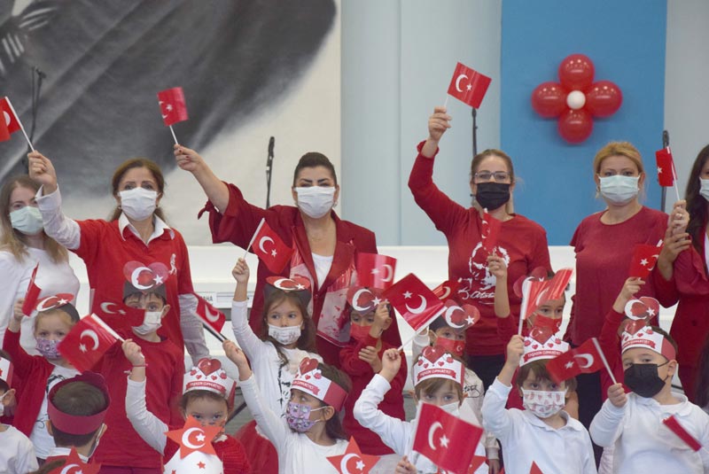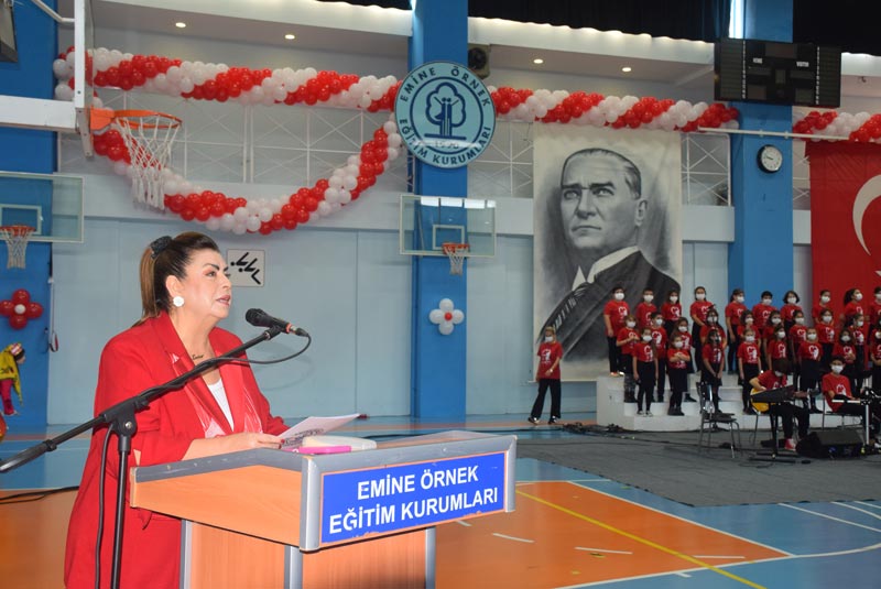 Atatürk’ün “Cumhuriyeti biz kurduk, onu yüceltecek ve yaşatacak sizlersiniz” sözünü kılavuz olarak alan Emine Örnek Okullarında, 29 Ekim Cumhuriyet Bayramı Tören’ ine saygı duruşu ve İstiklal Marşı ile başladı.