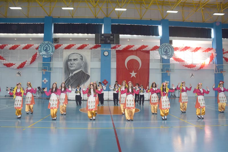 3.sınıf öğrencilerinin “potbori” dansları ve 7.sınıf öğrencilerinin “halk oyunları” sunumları büyük beğeni ile izlendi. 5.sınıf öğrencilerinin “jimnastik” gösterisi salonda görsel bir şölen yarattı.
