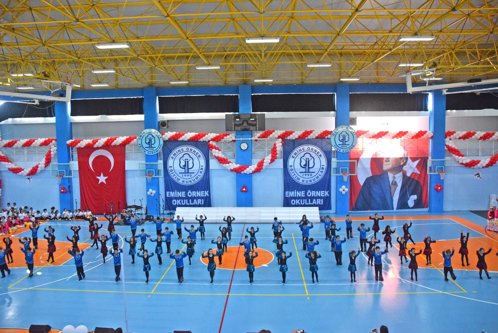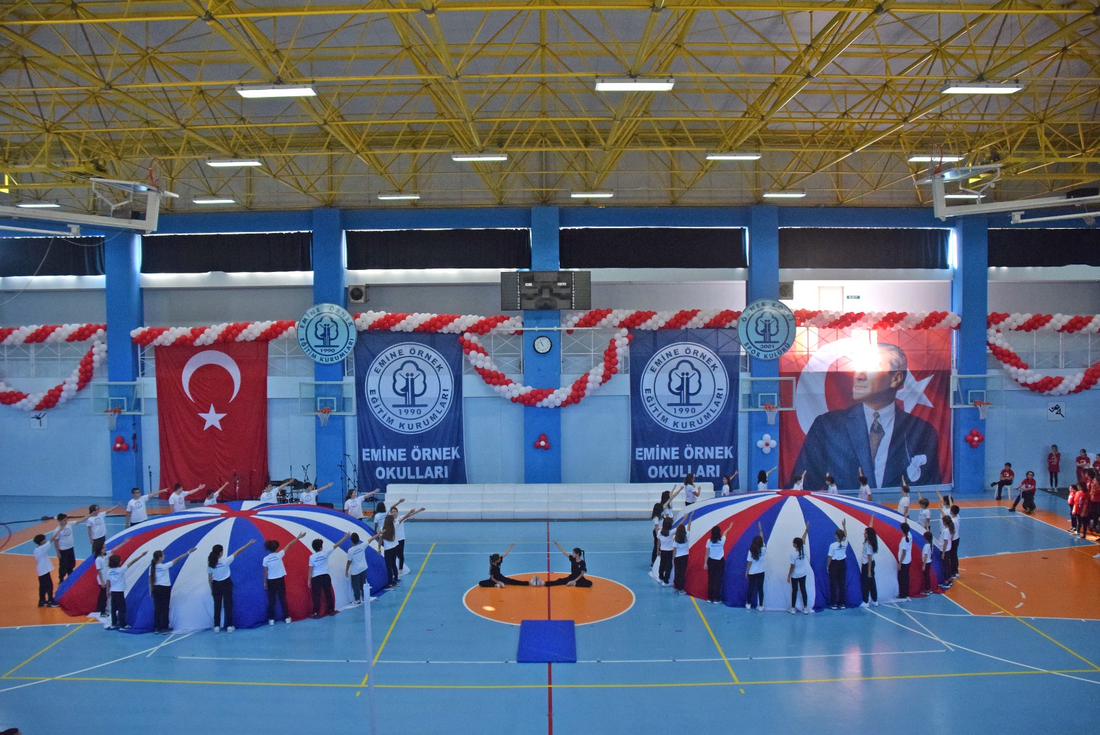 Atatürk’ün “Cumhuriyeti biz kurduk, onu yüceltecek ve yaşatacak sizlersiniz” sözünü kılavuz olarak alan Emine Örnek Okullarında, 29 Ekim Cumhuriyet Bayramı törenine saygı duruşu ve İstiklal Marşı ile başlandı.