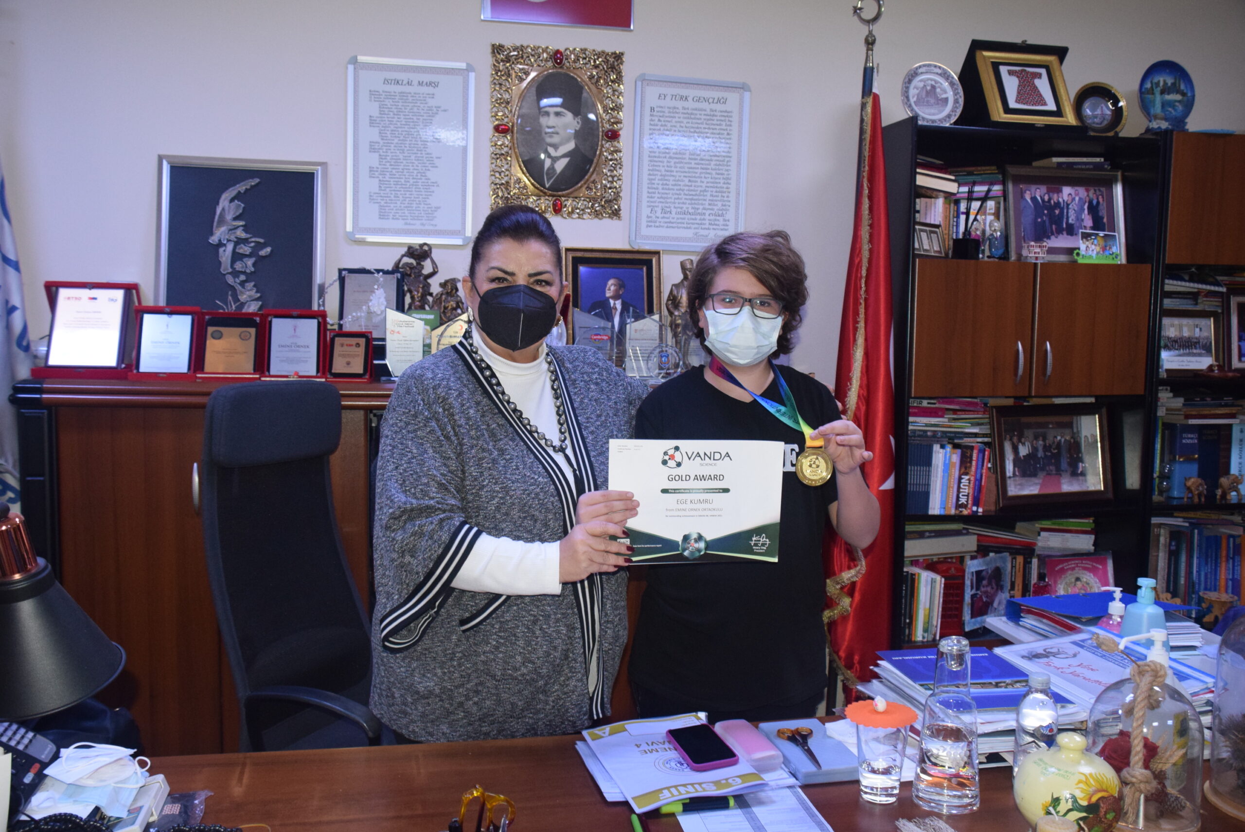 Uluslararası VANDA Fen Yarışması yılda bir defa düzenlenmektedir. Öğrencilerin yaratıcı ve sistematik düşünme becerileriyle soruda verilenleri sorunun çözümü için kullanabilme yöntemine odaklanır. Fen alanında üst düzey düşünme becerilerine odaklanan “ULUSLARARASI VANDA FEN YARIŞMASI”nda Emine Örnek Okulları 7.sınıf öğrencisi Ege KUMRU Dünya 11.’si ve Türkiye 2.’si olarak küresel düzeyde altın madalya ödülünün sahibi oldu.