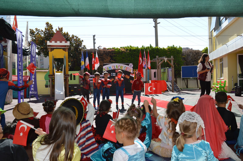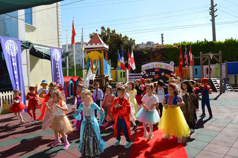Emine Örnekli minik öğrenciler, çeşitli ülkelere ait giydikleri kostümlerle, dünya ülkelerinin geleneksel müzikleri eşliğinde ve Barış Manço parçaları ile dans edip kırmızı halıda yürüyerek ülkeler defilesi yaptılar.