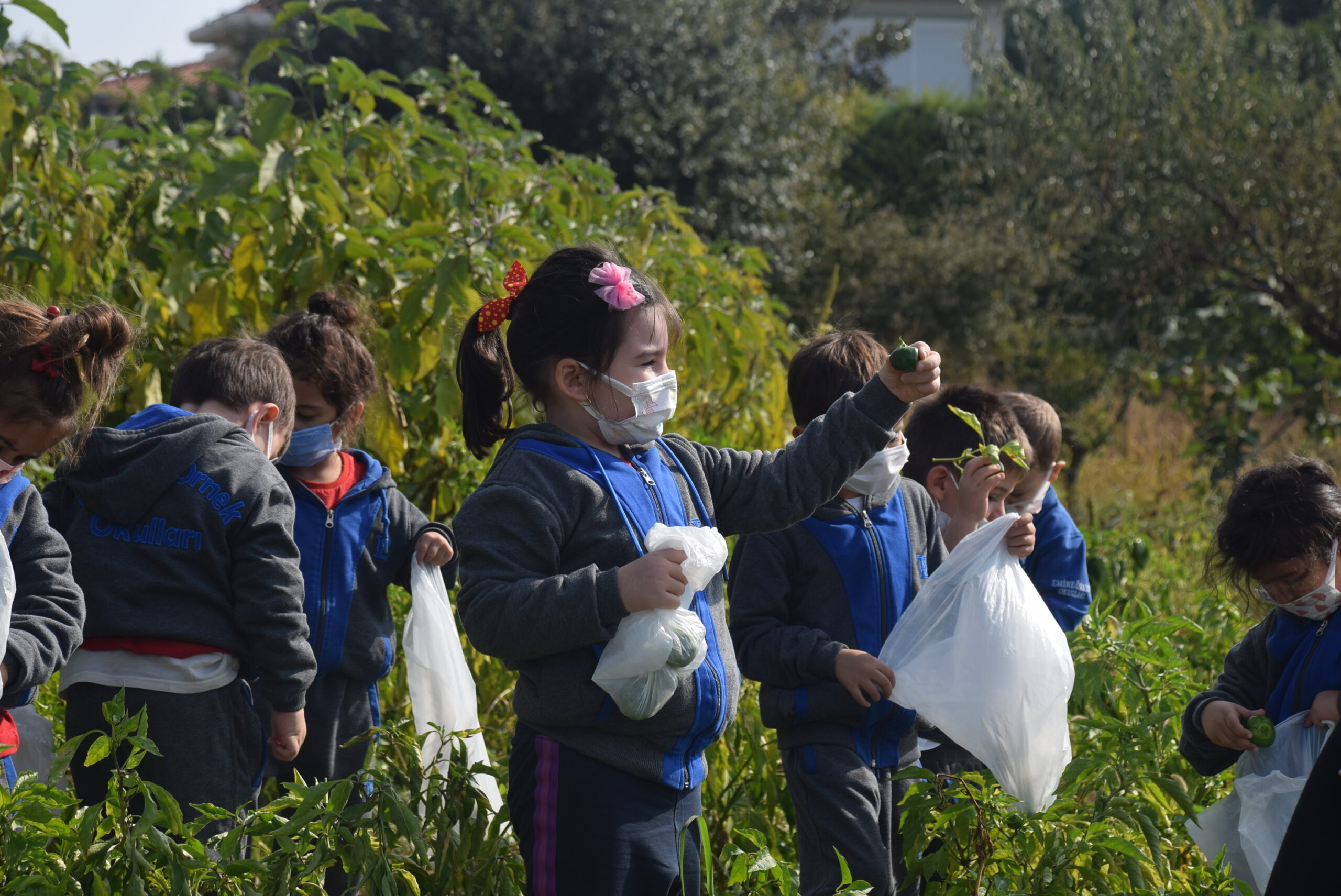 Avrupa ve Türkiye Çevre Eğitim Vakfı üyesi 11 Yeşil Bayraklı Emine Örnek Okulları Bademli ve Ataevler Anasınıfı öğrencileri, doğadaki dengeyi koruma misyonunu yüklenmiş, organik, sağlıklı ve güvenli beslenmeyi ilke edinmiş okullarında, 7 dönümlük tarım alanında GDO’suz tohumlarla üretilmiş sebze ve meyveler hakkında Dünya Gıda Günü etkinlikleri kapsamında Gıda Mühendisi Emir Ertaş’tan bilgi aldılar.