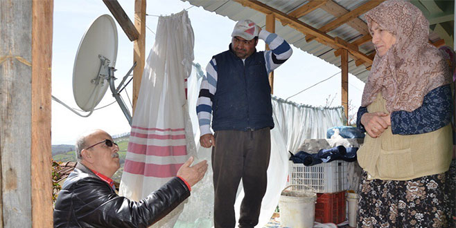 İznik Belediye Başkanı Osman Sargın yanan evde incelemeler yaparak Yörükler Muhtarı Mehmet Batı ile hasar tespitinde bulundu.