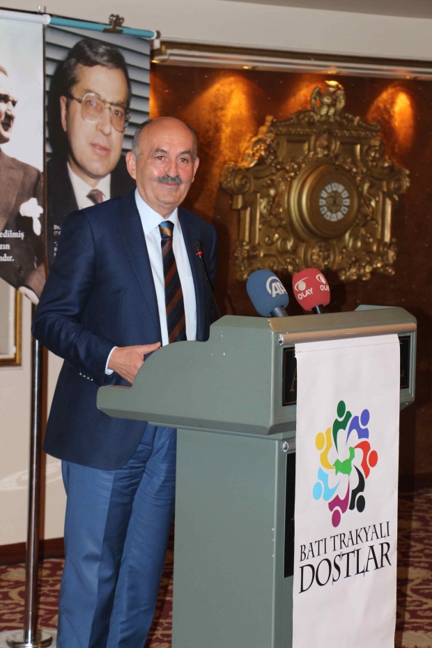 Sağlık Bakanı Mehmet Müezzinoğlu, Batı Trakya’da insan gibi, insan hakları çerçevesinde davranmayan bir ülkenin yönetim anlayışının sıkıntısını, zulmünü çektiklerini de hatırlatarak kürsüden indi. Gecenin sonunda, Batı Trakyalı Dostlar Grubu’nun kurucularından Uzm.Dr. Ali Emin Latif, Bakan Müezzinoğlu’na katılımından dolayı teşekkür ederek, plaket takdim etti.