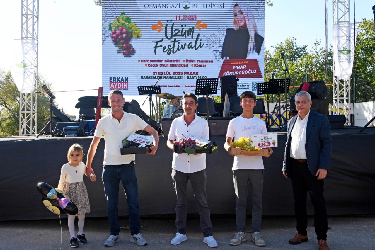 Alphonse, Red Globe, Ata Sarısı ve İtalyan, cinsinde üzümlerin ayrı ayrı kategorilerde yarıştığı festivalde birinciye 7 bin lira, ikinciye 5 bin lira üçüncüye ise 3 bin lira para ödülü verildi. Karabalçık Mahallesi’nde bu yıl 11’incisi düzenlenen üzüm festivalinde kurulan oyun alanlarında çocuklar oyunlar oynayarak keyifli vakit geçirdi. Osmangazi Halk Dansları Topluluğu ekipleri yaptığı gösteriler ile festivale renk katarken, Sanatçı Pınar Kömürcüoğlu, verdiği konserle festivale katılanlara unutulmaz anlar yaşattı.