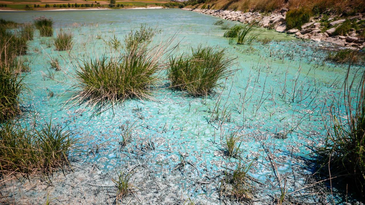 İstanbul`da su kaynaklarından olan Sazlıbosna Barajı`nın üzerini yeşil ve mavi tabaka kapladı.