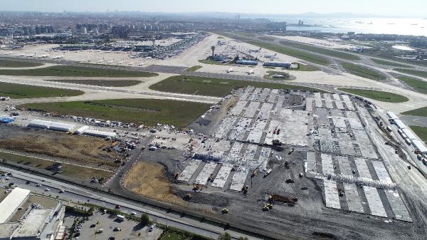 Erdoğan’ın koronavirüs ile mücadele kapsamında yapımını duyurduğu Atatürk Havalimanı’ndaki geniş bir alanda oluşturulan bin yataklı hastane inşaatında iş makineleri ve hafriyat kamyonları ile aralıksız bir çalışma yürütülüyor.