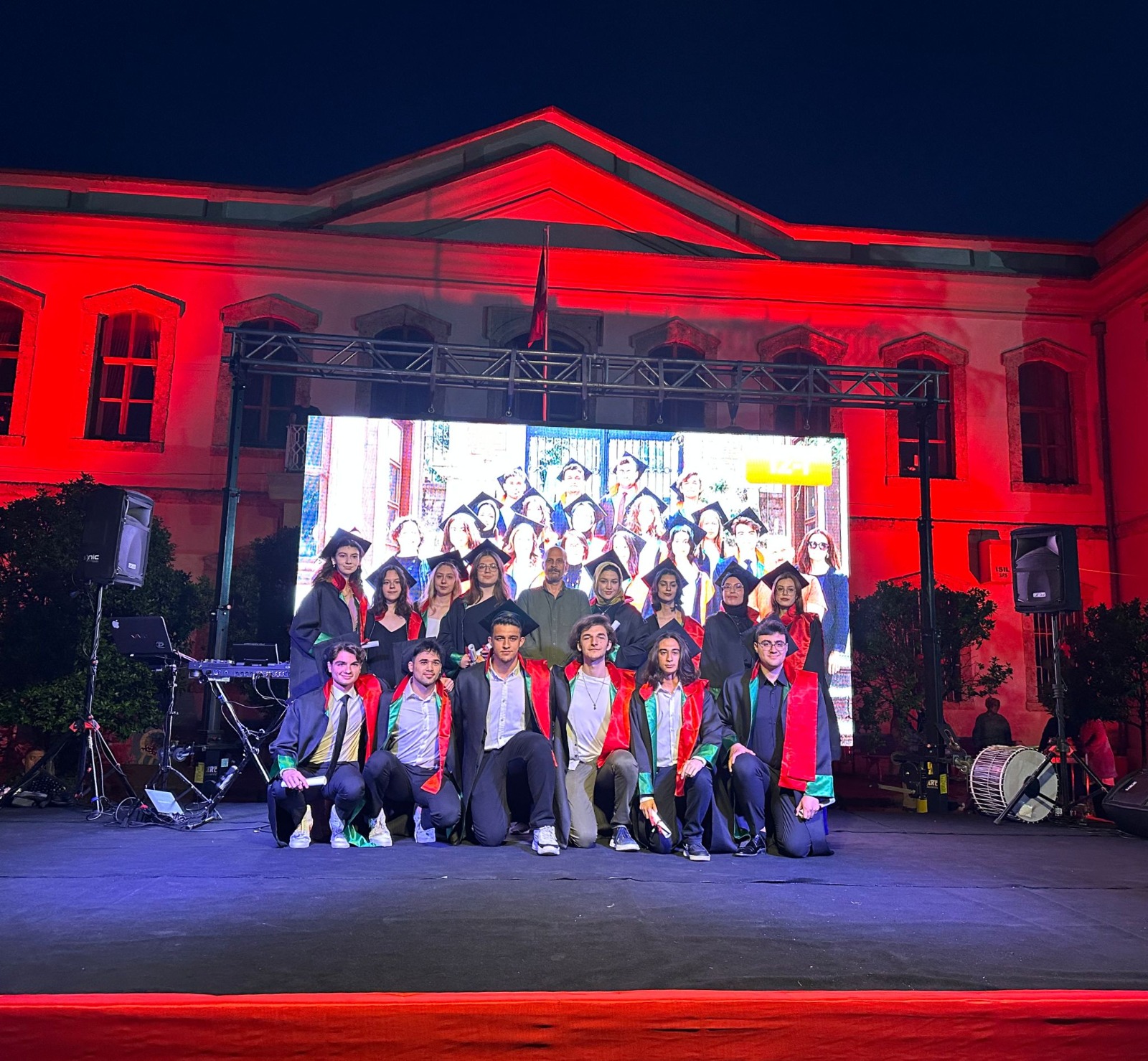 Törende, öğrencilerin aileleri de çocuklarının mezuniyetinin gururunu yaşadılar. Okulu ilk 3’te bitiren öğrencilerin belirlendiği törende, okul 1’incisi Berker Akgün, mezuniyet kütüğüne 1’lik plaketi çaktı. Daha sonra kendileri için özel olarak hazırlanan pastayı kesen öğrenciler, hep birlikte keplerini havaya fırlatarak mezuniyetin coşkusunu yaşadı. Törenin sonunda yapılan havai fişek gösterisiyle coşkuyu doruğa çıkardı.