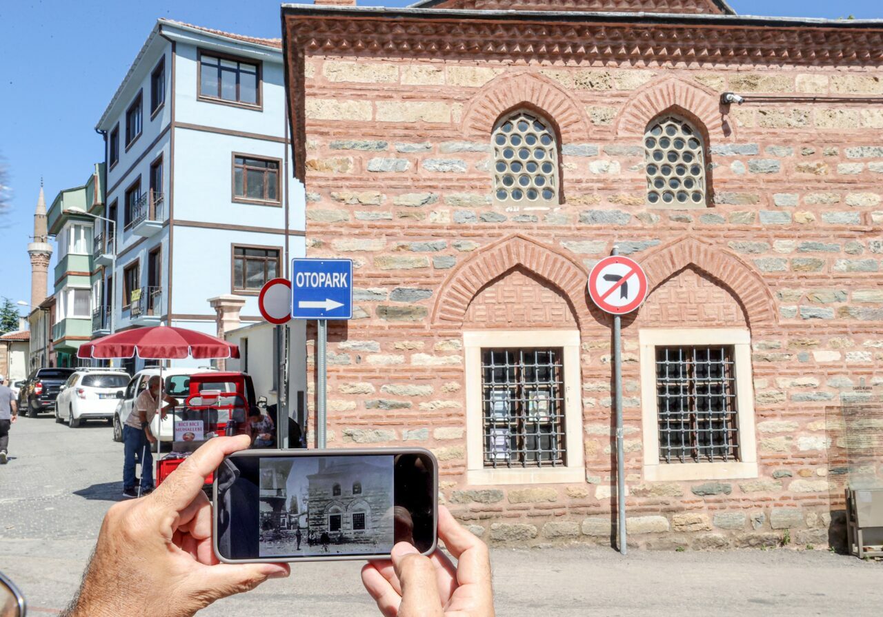Köprü, çeşme, cami, türbe, okul, hastane, banka, köşk ve sokakların yer aldığı karelerdeki mekanları bulup aynı açıdan fotoğraflayan Özkeser, kentin zaman içindeki değişimine yakından tanıklık ediyor.