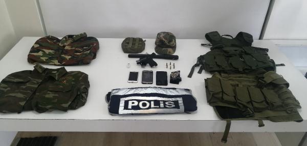 Kendisini polis olarak tanıttığı belirtilen şüpheli Tarık K’nin saklandığı adreste yapılan aramada, 1 adet ruhsatsız tabanca ve çok sayıda askeri kamuflaj ele geçirildi.