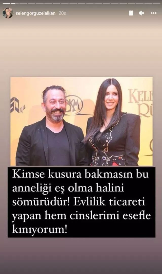 Yönetmen Hamdi Alkan ile sekiz yıllık evliliği geçtiğimiz aylarda sürpriz şekilde sona eren Selen Görgüzel, nafaka kriziyle ilgili haberleri görünce bir paylaşım yaptı. 43 yaşındaki oyuncu ve şarkıcı, Instagram hesabından yaptığı paylaşımda “Kimse kusura bakmasın bu anneliği, eş olma halini sömürüdür! Evlilik ticareti yapan hemcinslerimi esefle kınıyorum!” yorumunda bulundu.