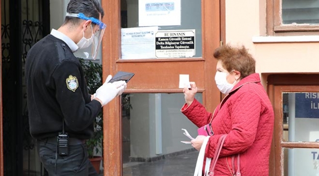 Odunpazarı ilçesine bağlı Arifiye Mahallesi’ndeki Büyükşehir Belediyesi Muhtarlar Şube Müdürlüğüne gelenler, girişte görevliler tarafından HES kodları kontrol edildikten sonra içeriye alınarak, HES kodu eşleştirme işlemleri yapılıyor.