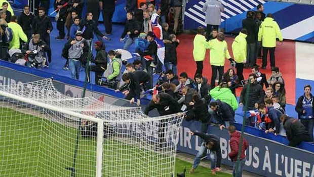 Paris’te yaşanan terör saldırıları Fransa-Almanya A milli futbol takımlarının özel maç oynadığı Stade de France’da da duyuldu. Stadın kapısına çok yakın bir noktada yapılan saldırı ve patlamalar nedeniyle tribünlerde bulunan on binlerce futbolseverin ve takımların dışarı çıkmalarına saatlerce izin verilmedi.