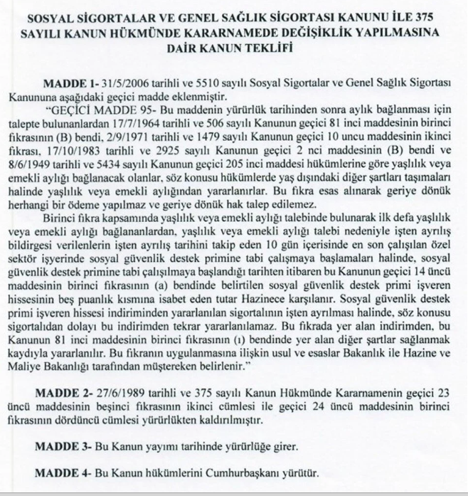 4 maddeden oluşan bir teklif. Teklif, yalın, sade, uygulanabilirliği basit, en genel şekilde hakları genişletici bir düzenlemeyi ihtiva ediyor.