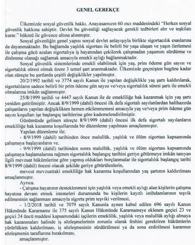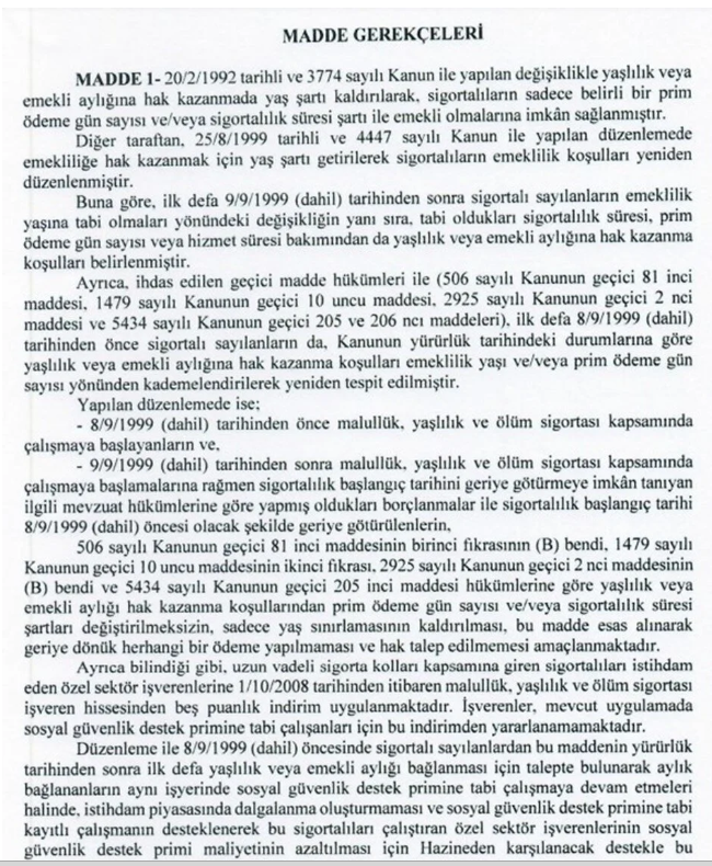 Biz bugün teklifimizi bahsettiğimiz gibi cuma günü son toplantımızı yaptık. Sabah itibarıyla sunuma hazır hale getirdiler. 4 maddeden oluşan teklif, Resmi Gazete’de yayımlandığında yürürlüğe girecek. 5 milyona yakın insanımızı süreç içinde etkileyecek. 2 milyon 250 bine yakın insanımız 2023 yılında emekliliği hak edecek.