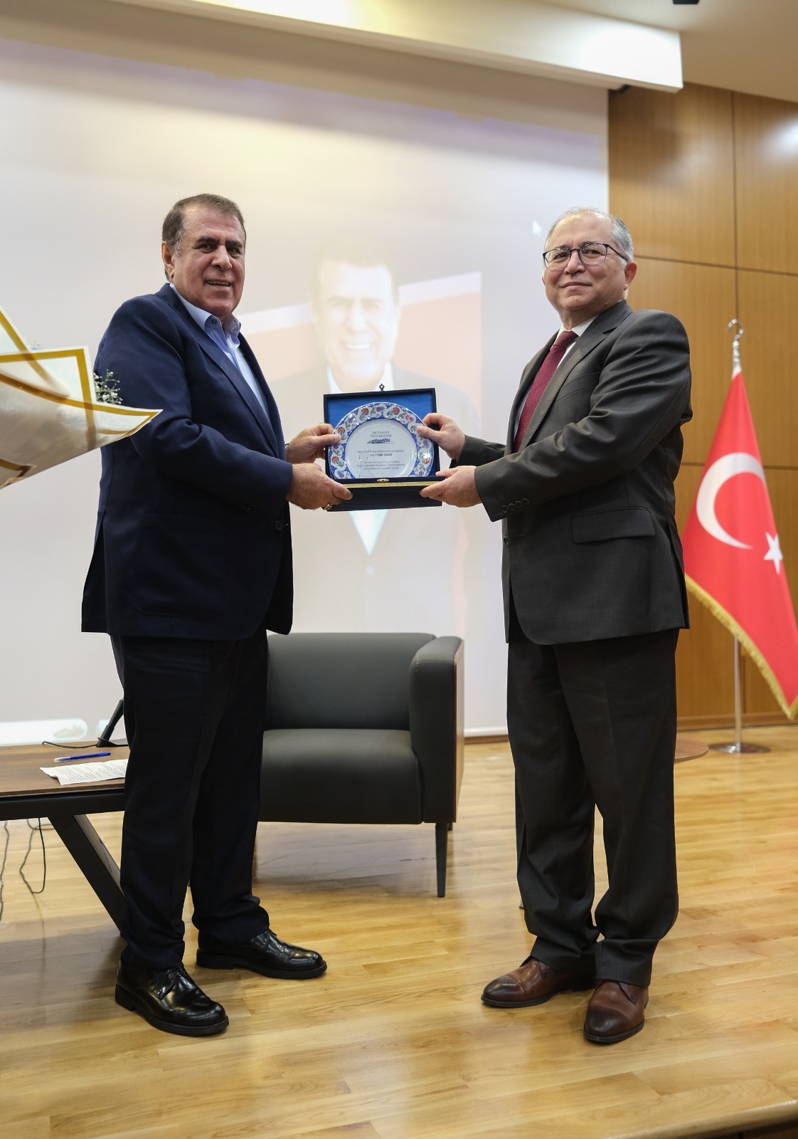 Öğrencilerin sorularını da yanıtlayan Faik Çelik’e konuşmasının ardından Mudanya Üniversitesi Rektör Vekili Prof. Dr. Emin Karip ile Danışma Kurulu Başkanı Prof. Dr. A. Saim Kılavuz tarafından teşekkür plaketi verildi.