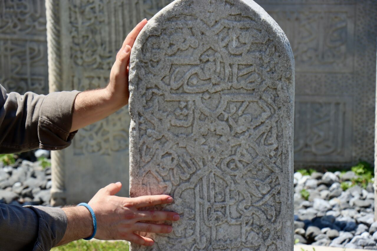 “Mezar taşında ‘Sahibü’l-kabr/El merhum/El mağfur/Es said/Eş şehid/El-muhtac ila-rahmetillahi teala/Nakkaş-ı Sultan’ yani sultanların nakkaşı ‘Sinan’ veya ‘Mehmet Sinan Bey’ yazıyor. Burada bir tereddüdümüz var. Yazı, çok girift. ‘İbn Saati Nurullah.’ Babasının adı Nurullah olabilir. Farklı okuyanlar var ama ben böyle okudum. Dolayısıyla sultanların nakkaşı olduğu, adının Mehmet Sinan olduğu görüyoruz. Babasının adı Nurullah. Arka tarafında da ‘Sahibü’l-kabr Nakkaş Sinan’ yazıyor. Alt tarafında da bir hadis-i şerif var. Mealen ‘Müminler ölmezler. Bilakis onlar fani alemden baki aleme göç ederler.’ yazar. Taş, şifreli bir şekilde yazılmış, birçok şey gizlenmiş gibi. Bütün bunlar, biraz bilinmezlik oluşturuyor. Bu kadar süslü ve güzel, önemli bir taşı korumak, envanterini çıkararak, araştırmacıların, okuyucuların, meraklıların ilgisine sunmak gerekir.”