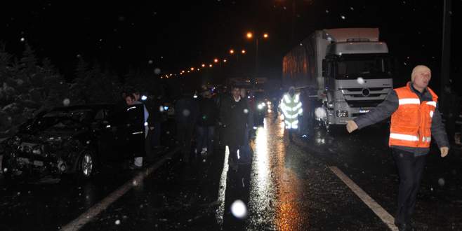 TEM Otoyolu Alikahya mevkiinde, İstanbul istikametine gitmekte olan Ahmet Sevim yönetimindeki 66 LT 944 plakalı TIR, kar yağışı nedeniyle kayarak bariyerlere çarptı. Arkadan gelmekte olan araçlar TIR’a çarparak kazaya karıştı.