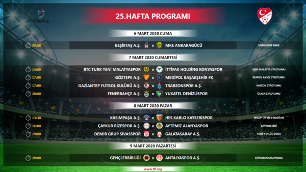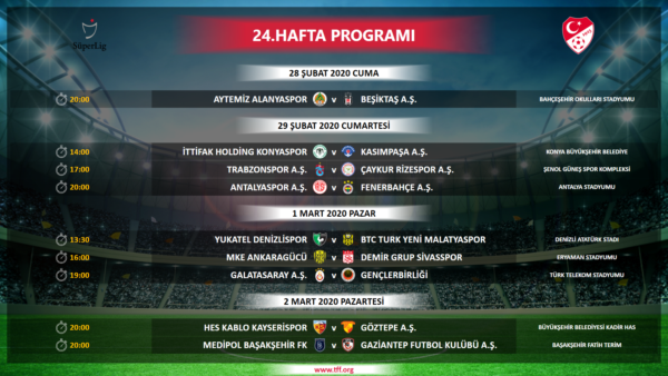 Ana Sayfa › Final › Futbol › Fenerbahçe-Galatasaray derbisinin tarihi belli olduFenerbahçe-Galatasaray derbisinin tarihi belli oldu Süper Lig Cemil Usta Sezonu 21, 22, 23, 24 ve 25. hafta müsabaka programları açıklandı. Giriş: 31-01-2020 17:31Güncelleme: 31-01-2020 17:55Kaynak: FutbolFinal ABONE OL + - Karşılaşma programları şöyle; HABERİ PAYLAŞ