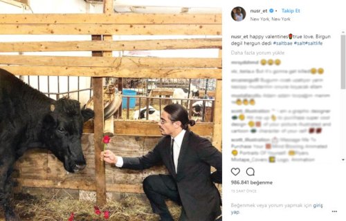 ‘Tuz serpme’ hareketi ile dünya çapında üne kavuşan sosyete etçisi, sosyal medya hesabından yaptığı Sevgililer Günü paylaşımı ile herkesi güldürdü.