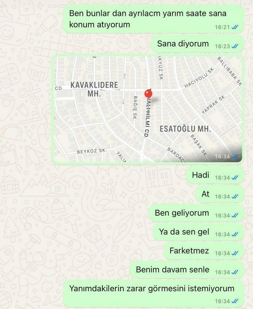 Bu arada kavgada silahla yaralanan Çağla Yıldırım’ın olay anı ve sonrasını sosyal medya hesabından canlı yayında paylaştığı görüntüler de ortaya çıktı. Ayrıca ikilinin bir uygulama üzerinden konuşmalarını da gün içerisinde sosyal medya hesaplarında paylaştıkları görüldü.