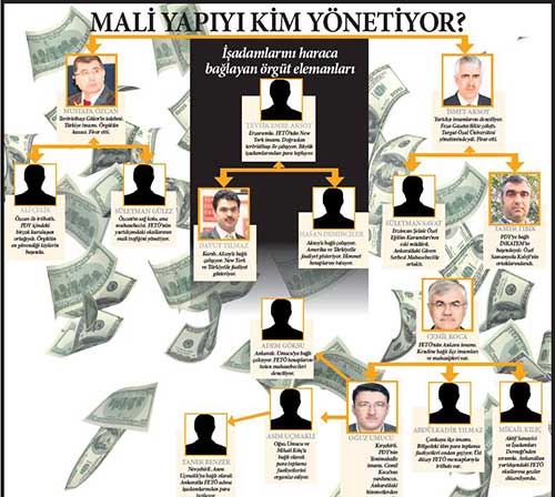 Ankara’da örgütün mali yapısı içinde etkili 7 imam bulunuyor. Bu imamlardan en etkilisi kendine bağlı ilçe imamları ve muhasipleri olan, paralel okullardan sorumlu, Ankara’da geniş siyasi çevresi bulunan 2014’te yurtdışına kaçan Cemil Koca. Ankara’da toplanan paraların hesabını Oğuz Umucu (2015’te firar etti) ve Abdülkadir Yılmaz yapıyor. Pensilvanya’daki beyin takımıyla irtibatlı olan Yılmaz, PDY’nin Çankaya İlçe İmamı’ydı. Kapatılan Aktif Sanayici ve İşadamları Derneği’nden sorumlu örgüt üyesi Mikail Kılıç, Ankara’dan yurtdışındaki okullara geziler düzenliyordu. Oğuz Umucu’ya bağlı olarak çalışan Adem Göksu da PDY’nin hesaplarını tutuyor. Asım Uçmaklı ise Oğuz Umucu ve Mikail Kılıç’a bağlı çalışıyor. Uçmaklı’nın yardımcılığını da Taner Benzer yapıyor. PDY’nin mali yapısını yönetenler arasında Kaynak Holding ve Bank Asya’nın ortaklarından Naci Tosun, Ali Çelik, Abdullah Katırcıoğlu, Ali Çelik, Ahmet Beyaz ile Naci Tosun’un yardımcıları Hasan Kahveci ile Erkan Ünal da örgütün önemli finans sorumluları arasında.