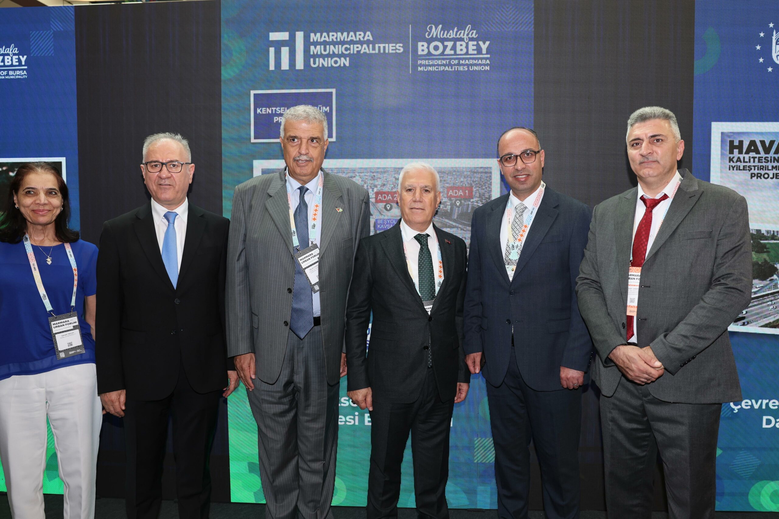 Marmara Belediyeler Birliği (MBB) tarafından bu yıl ‘Tüm mümkünlerin kıyısında’ temasıyla düzenlenen MARUF’25, 50 ülkeden 500’ün üzerinde konuşmacı ve 5000’i aşkın katılımcıyla Haliç Kongre Merkezi’nde düzenleniyor. MBB Başkanı ve Bursa Büyükşehir Belediye Başkanı Mustafa Bozbey, foruma katılan kardeş şehir El-Halil Belediyesi ve diğer Filistinli heyetle bir araya geldi. Filistin Belediyeler Birliği Başkanı Abdul Karim Al-Zubaidi, Filistin Belediyeler Birliği Müdürü Abdelmomen Afana, Arraba Belediye Başkanı Ahmed Arda, Barta Belediye Başkanı Ghassan Qabaha, Yabad Belediye Başkanı Amjad Atatrah, Nablus Belediyesi Uluslararası İlişkiler Başkanı Alafo Alaker, Hebron Belediyesi Uluslararası İlişkiler Başkanı Saeed Alkhatib, El Halil Belediyesi Uluslararası İlişkiler Daire Başkanı Said Tamimi, Ramallah Belediyesi’nden Sahar Tbeleh ile sohbet eden Başkan Mustafa Bozbey, Filistin’deki son durum hakkında bilgi aldı.