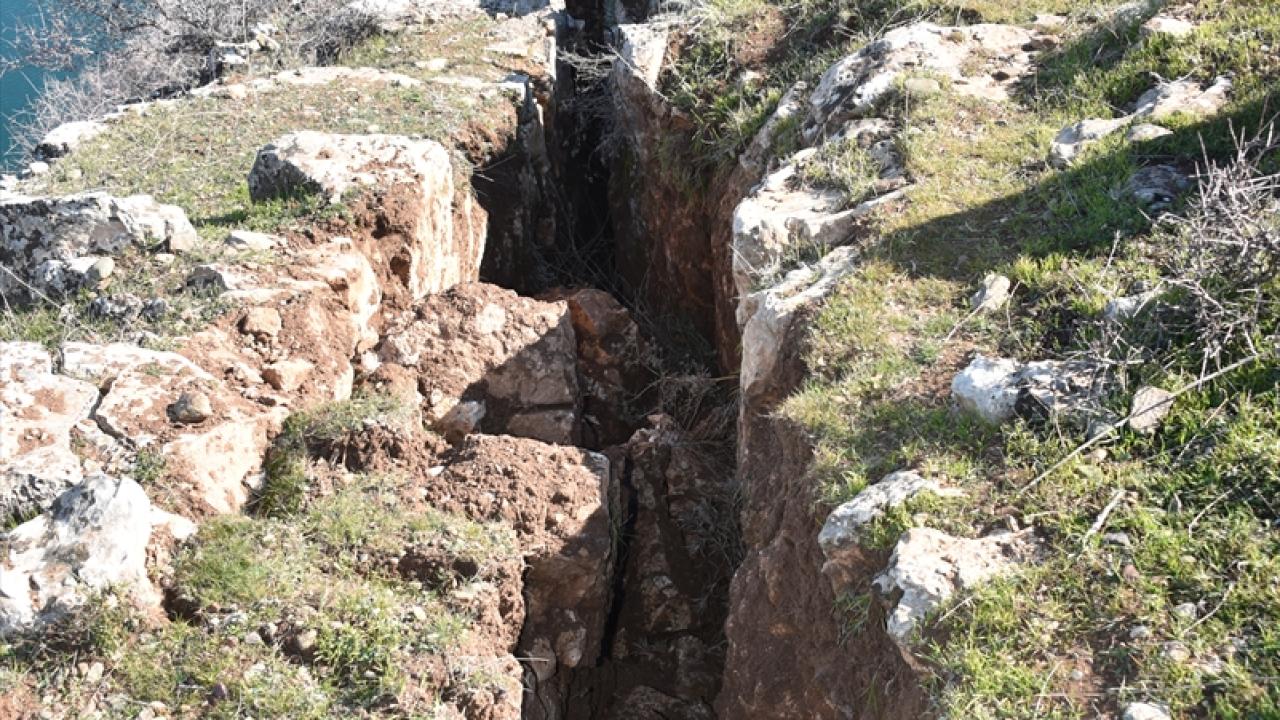 Pazarcık ve Elbistan ilçelerinde 6 Şubat’ta meydana gelen 7,7 ve 7,6 büyüklüğündeki depremler sırasında Şanlıurfa’nın Siverek ilçesinde Fırat Nehri kıyısında oluşan yarıklar, AA ekibi tarafından görüntülendi.