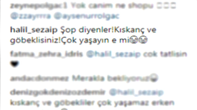 Halil Sezai fotoğrafının altına “Benim neden olmuyor? Bunu nasıl başardın diye soranlara..1 ay bile olmadan nasıl bu hale geldiğimin sırrını anlatacağım.” notunu düştü. Sezai’nin fotoğrafına Fotoşop diye yorum yapanlara şarkıcı “Şop diyenler! Kıskanç ve göbeklisiniz! Çok yaşayın e mi” diye cevap verdi.