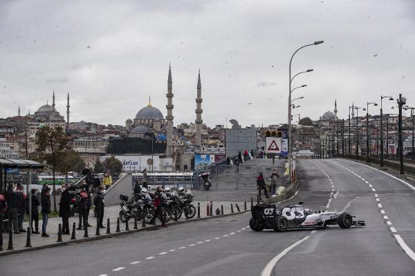 Formula 1 yarışlarının Türkiye’deki ayağının tanıtım filmi için İstanbul’un tarihi noktalarında pilotlar sürüş yaptı. Dün, Arnavutköy Sahili’nde sürüş yapan 2 pilot bugün ise Eminönü ve Galata Köprüsü’nde boy gösterdi. Tanıtım filmi nedeniyle yapılan sürüş için helikopterdeki kameradan da görüntü alındı. Köprüler üzerinde Formula 1 araçlarının gösteri sürüşü drone ile de görüntülendi.