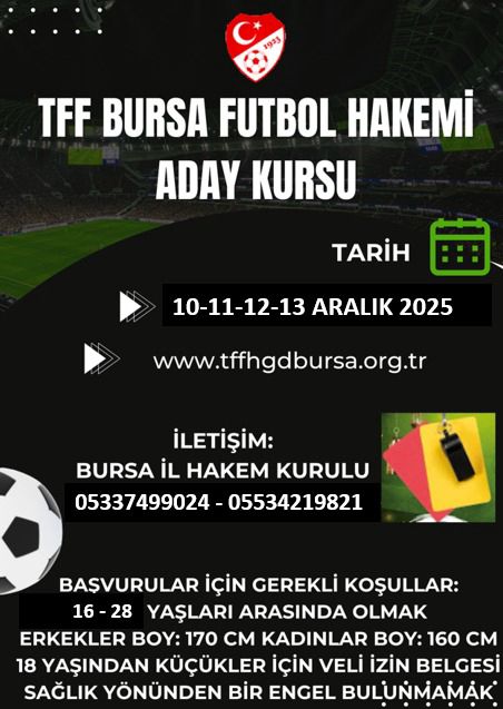 TFF Bursa İl Hakem Kurulu, Bursa’da hakem kursu başlatıyor…