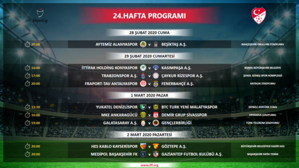 Ligde 11. sıradaki Fraport TAV Antalyaspor’un 25, birer maçı eksik 12. BtcTurk Yeni Malatyaspor ve 14. Çaykur Rizespor’un yanı sıra 13. Yukatel Denizlispor’un 24’er puanı bulunuyor. 21 puanlı İttifak Holding Konyaspor 15, 20 puanlı MKE Ankaragücü 16, 19 puanlı Kasımpaşa 17, 16 puanlı Hes Kablo Kayserispor ise 18. sırada yer alıyor.