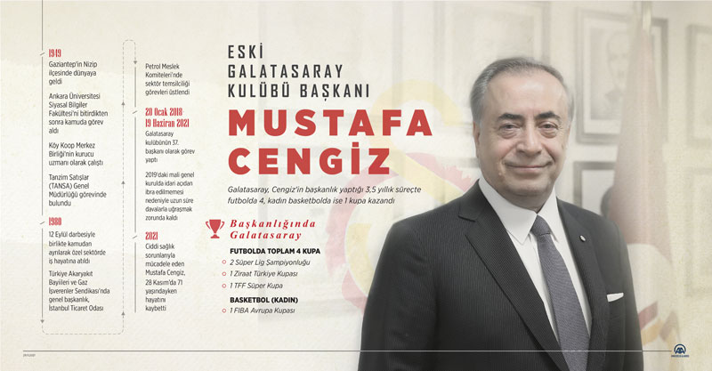 Mustafa Cengiz, 6 Mayıs’ta yaptığı açıklamada sarı-kırmızılı kulübün başkanlığına tekrar aday olmayacağını duyurmuştu. Cengiz’in aday olmadığı genel kurulda, 19 Haziran 2021’de başkanlığa Burak Elmas seçilmişti.