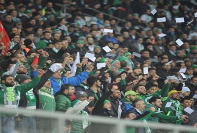Bursaspor ile Fenerbahçe arasında oynanan Spor Toto Süper Lig 20. hafta maçına yeşil-beyazlı taraftarlar yoğun ilgi gösterdi. Tribünlerin tamamını dolduran taraftarlar, takımlarına büyük destek verdi.