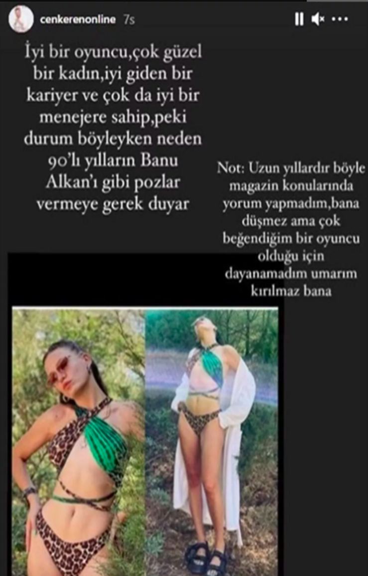 - Sanatçı Cenk Eren, Sarıkaya’nın son paylaştığı bikinili pozlarını eleştirirken, güzel oyuncuyu Banu Alkan’a benzetti.