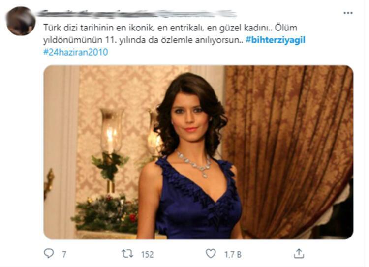 - “Türk dizi tarihinin en ikonik, en entrikalı, en güzel kadını.. Ölüm yıl dönümünün 11. yılında da özlemle anılıyorsun.. #bihterziyagil #24haziran2010” (CNNTÜRK)
