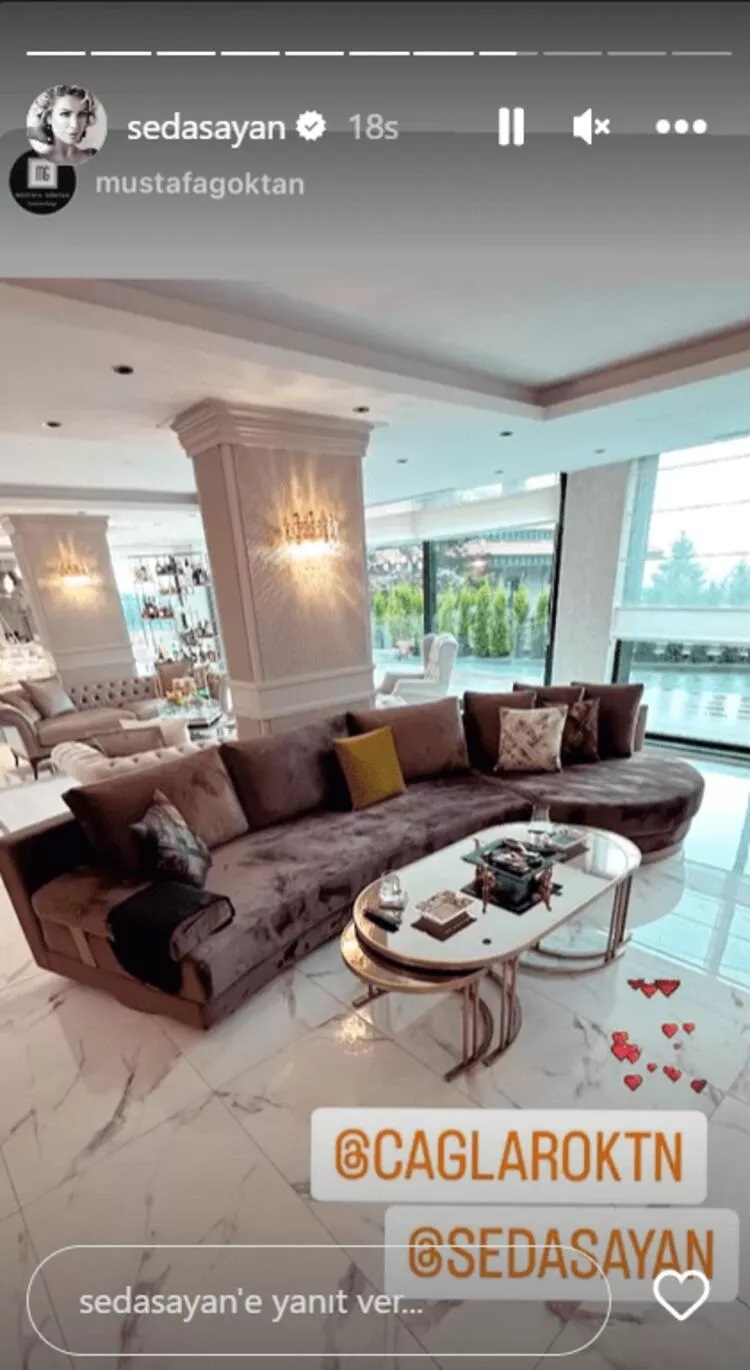 - Geçen yıl nikah masasına oturan Seda Sayan ve Çağlar Ökten 10 aylık evliliklerinde kriz olduğu iddiasıyla gündeme gelmişti. Sayan, şimdi de 4 milyon dolarlık lüks villasıyla gündeme geldi. Seda Sayan Çağlar Ökten’le yeni aşk yuvalarını paylaştı. Sık sık yaptırdığı estetiklerle de gündemden düşmeyen Seda Sayan’ın evinin her detayını paylaşması tepkilere yol açtı.