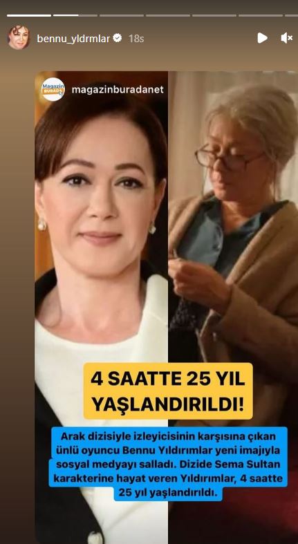 - Bennu Yıldırımlar, Arak dizisindeki rolü için makyajla 25 yaş yaşlandırıldı.