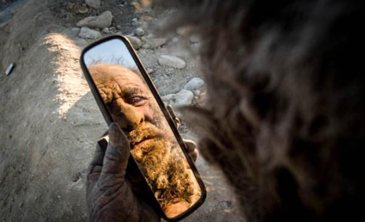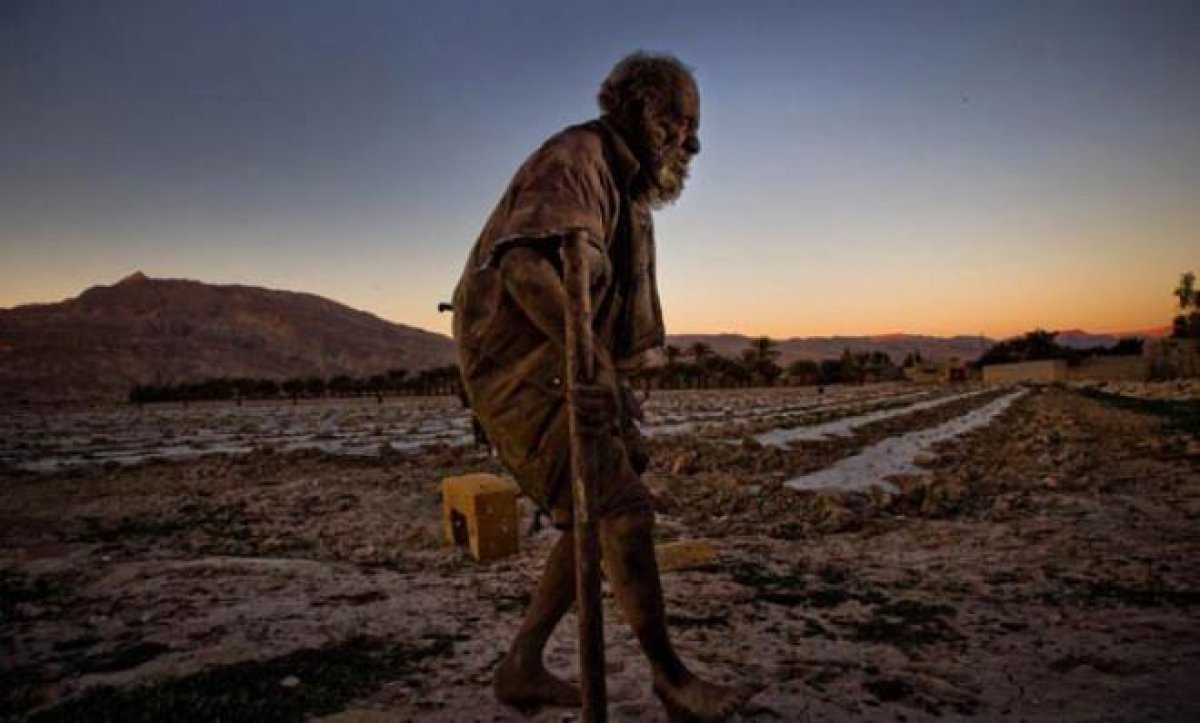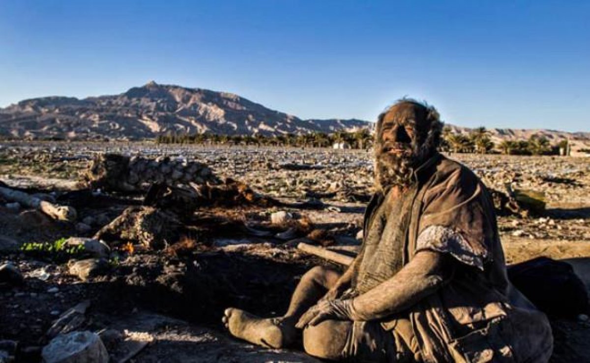 - İran’ın Farashband bölgesindeki bir köyde yaşayan 85 yaşındaki Amoo Hadji on yıllardır su ile temas etmiyor. 65 yıldır yıkanmayan Hadji, hijyenik olmayan ortamdaki yaşamını yıllardır sürdürüyor.