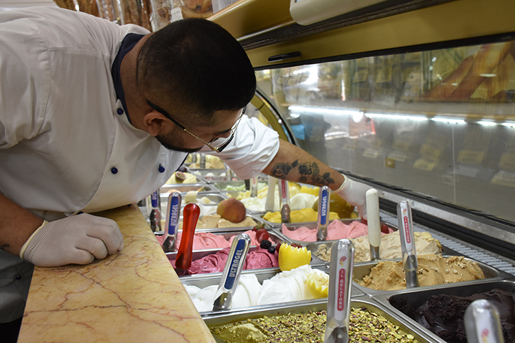 - Şef Morrone, meyveli dondurmalarda sezonluk çalışmayı tercih ettiklerini dile getirerek, “Farklı tatlarımız var mesela şu sıralar incirimiz var, erikli dondurma üzerine çalışıyoruz, kaki (hurma), üzüm, çilek gibi insanların hoşuna giden mevsimlik taze, sade, meyve içerikli dondurmalar yapıyoruz. Yaz aylarında genelde dondurmacılarda ‘sorbe’lerin daha fazla olması normaldir. Sorbe çok da sıvı bir şey değil, süt ve tatlandırıcı türevlerini içermez. Güzel bir şeftali sorbesi, güzel bir limon ya da mandalina mevsimindeyken mandalina sorbesi gibi. Müşterinin hoşuna giden şey bu.” değerlendirmesinde bulundu. Morrone, “Gelato” yani İtalyan dondurması ile ABD’deki “Ice-cream”in aynı şey olmadığını vurgulayarak, şöyle devam etti: “Burada tüketim kültürü de devreye giriyor. Gelato’nun da pizza gibi geleneği var. Gelato’nun hazırlandığı makine ile Ice-Cream’in hazırlandığı makine farklı. Ice-Cream üreten makinelerde hep daha fazla hava basılır ama bizim burada el emeğiyle yaptığımız dondurmada hava üfleme oranı yüzde 15-25 civarındadır. Ice Cream’de ise hava oranı yüzde 70-110 civarında oluyor. Daha büyük oluyor ama aslında pratikte hava veriyorlar. Ama bence İtalya’da da daha sade olanlar seviliyor ve tercih ediliyor.”