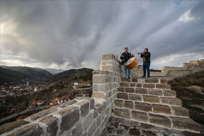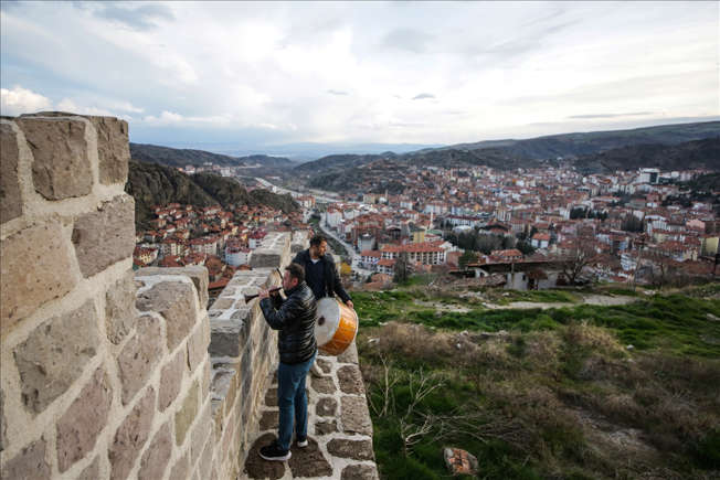 - 8 saatin ardından pişen keşkeğin hazır hale geldiği, İskilip Kalesi’nde çalınan ve nare diye adlandırılan davul ve zurna ile halka duyuruluyor.(AA)