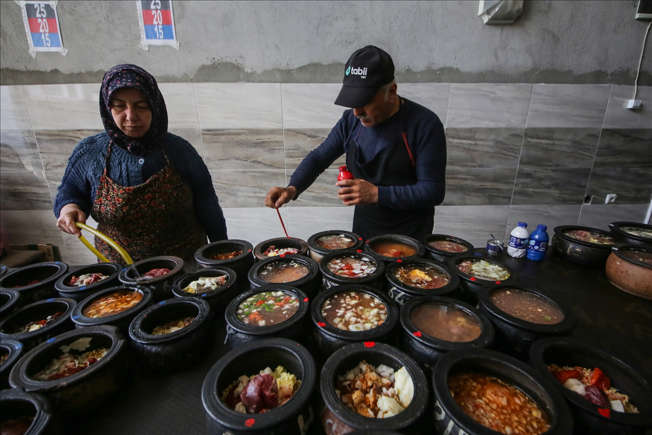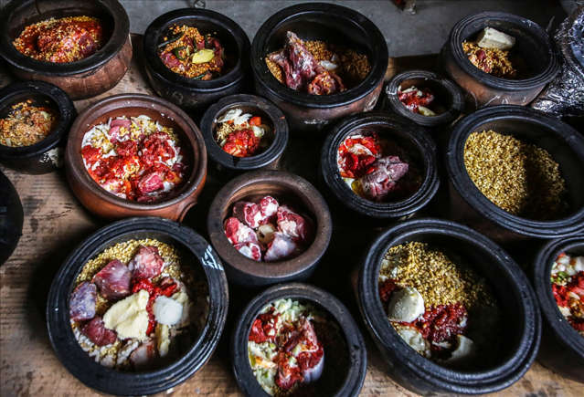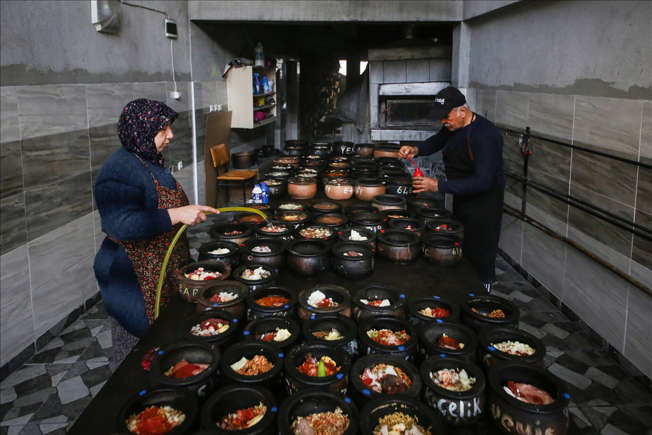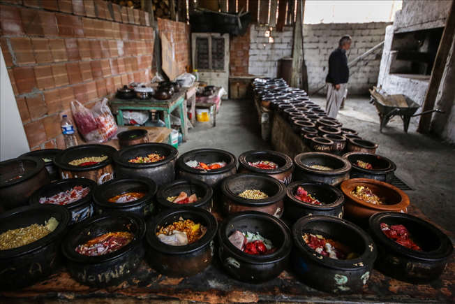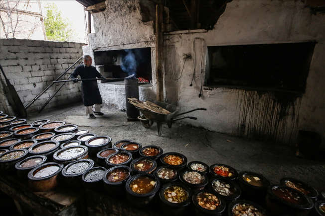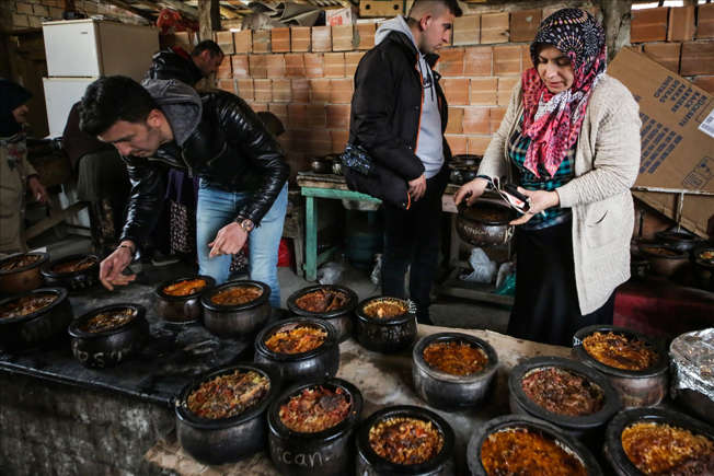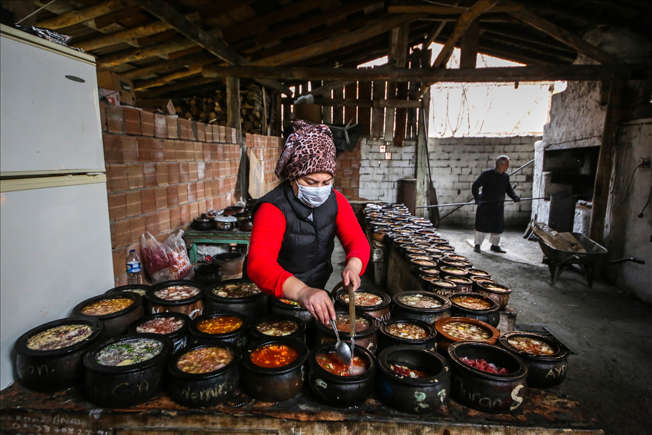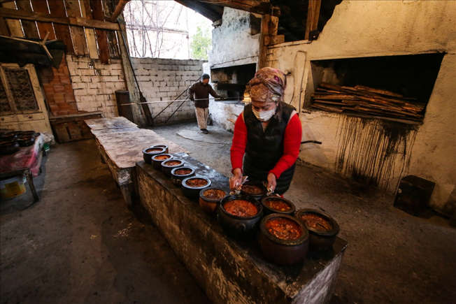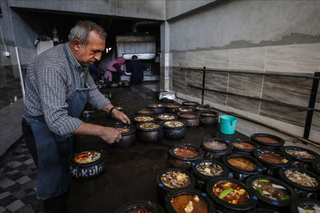 - Mahalle aralarında evlerin alt katında yer alan fırınlar sabah erken saatlerde yakılırken, ev hanımlarının ailedeki kişi sayısına göre getirdiği farklı boyutlardaki güveçler fırına yerleştiriliyor.