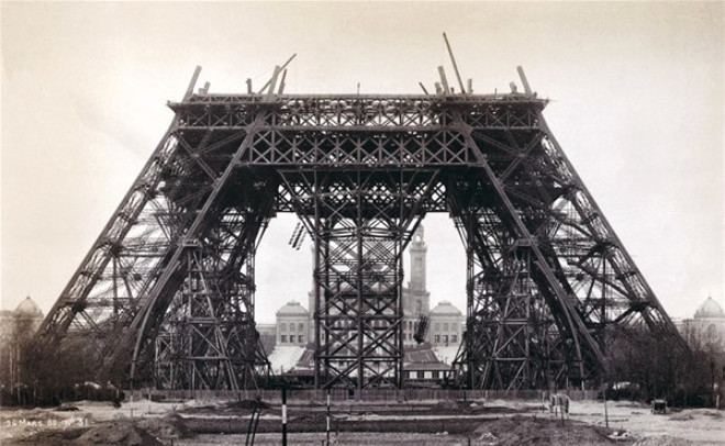 Eyfel Kulesi’nin çelik kirişleri zirveye doğru uzanırken, 1888