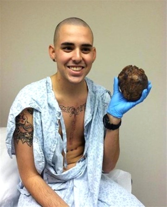 Başarılı bir kalp nakli ameliyatı geçiren hasta, eski kalbini elinde tutuyor