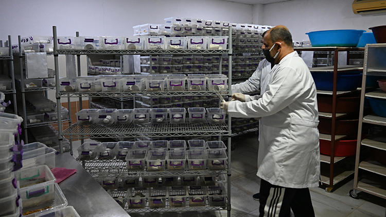 - Gül, 4 çalışanın bulunduğu tesisinde, şu an kara akrep” (Androctonus Crassicauda) ile “sarı akrep” (Leiurus abdullahbayrami) cinslerinden toplam 10 bin hayvanın bulunduğunu dile getirdi. Tesisindeki akreplerin ayda bir sağımını yaptıklarını anlatan Gül, elde ettikleri zehri de soğutucularda muhafaza ettiklerini belirtti.