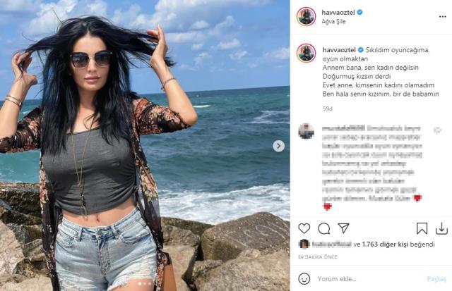 - “BEN KİMSENİN KADINI OLMADIM” 42 yaşındaki Öztel’in pozlarından çok yazdığı not dikkat çekti. Eşinden boşanan 2 çocuk annesi Havva Öztel, paylaşımına “Sıkıldım oyuncağıma, oyun olmaktan. Annem bana, sen kadın değilsin. Doğurmuş kızsın derdi. Evet anne, kimsenin kadını olamadım. Ben hala senin kızınım, bir de babamın” notunu ekledi.