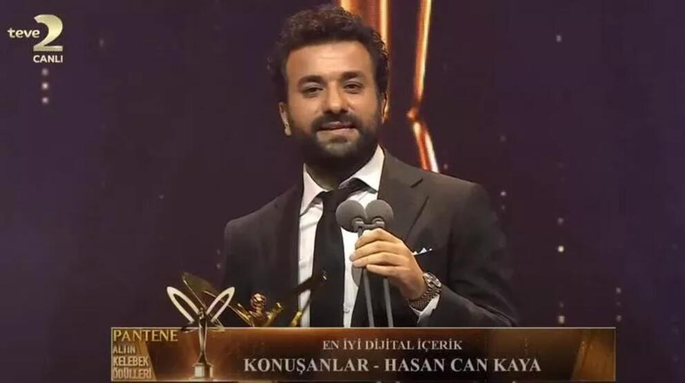 - EN İYİ DİJİTAL İÇERİK – HASAN CAN KAYA(KONUŞANLAR – EXXEN) / Hasan Can Kaya’ya ödülünü Saba Tümer verdi.