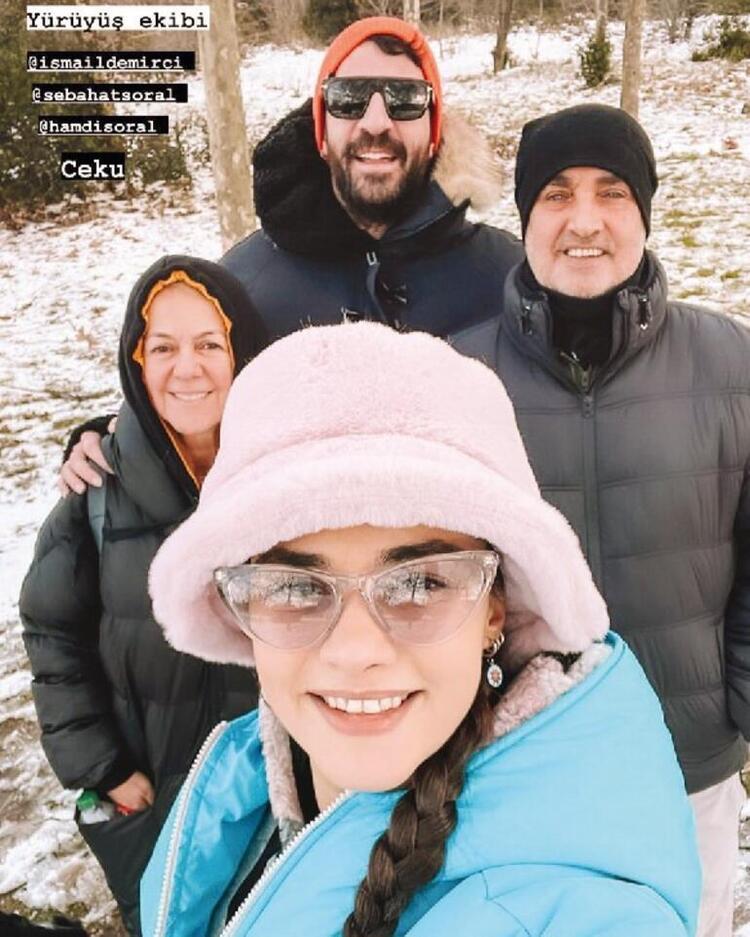 - HANDE SORAL… Geçtiğimiz günlerde hamile olduğunu açıklayan Hande Soral, eşi İsmail Demirci, annesi Sebahat Soral ve babası Hamdi Soral ile birlikte yürüyüşe çıktı. Ailesiyle selfie çeken oyuncu, “yürüyüş ekibi” notuyla kareyi yayınladı.