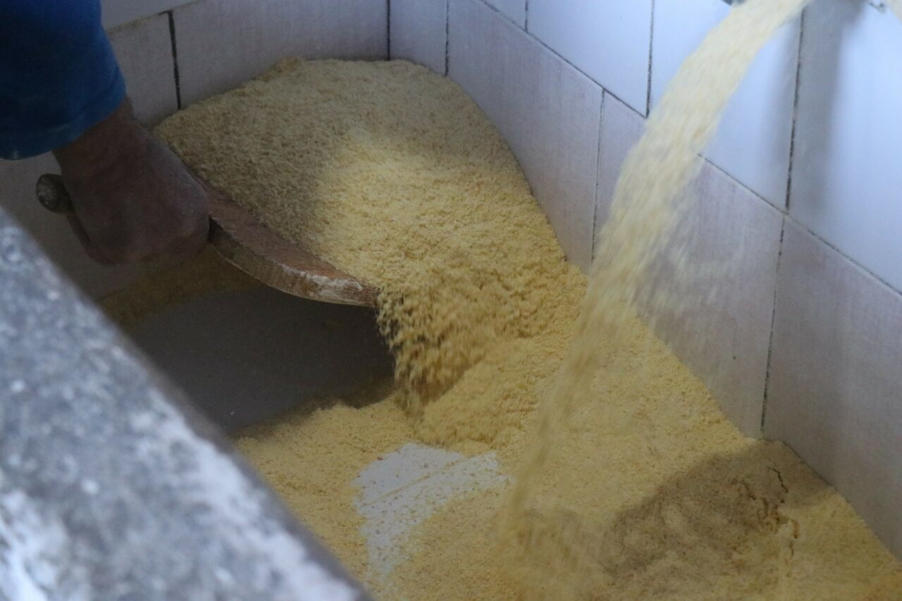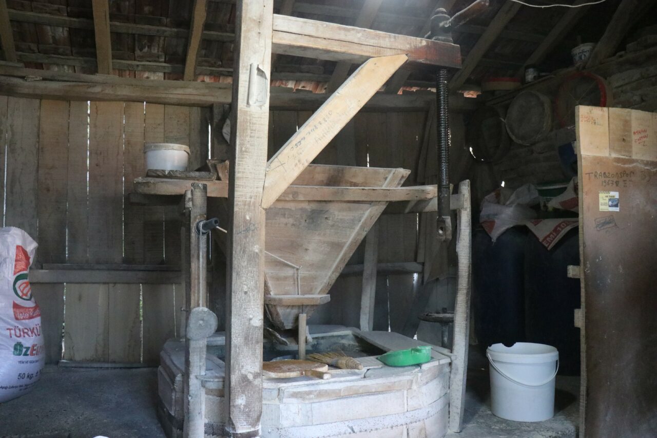 - Değirmendere Mahallesi’nde bulunan tarihi yapıda, 3 kilometre mesafeden su kanallarıyla getirilen suyun gücüyle dönen dev taşların arasında mısır ve buğday geleneksel yöntemlerle öğütülüyor. Fabrikasyon üretime direnerek doğallığını koruyan değirmende, unun kalitesini artırmak için yaklaşık 300 kilogram ağırlığındaki taşlara 3 ayda bir el işçiliğiyle bakım yapılıyor.